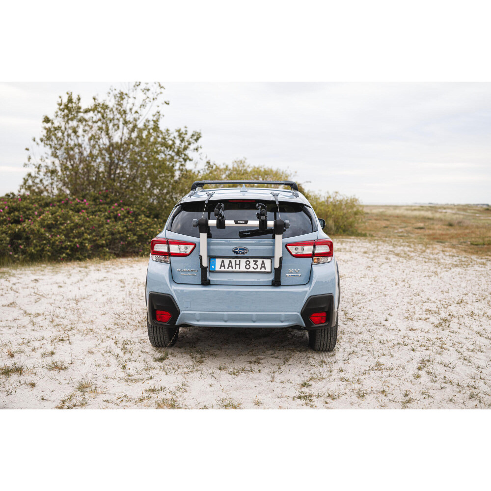 Transportar 2 bicicletas na maioria dos veículos com porta traseira, incluindo os equipados com spoiler.