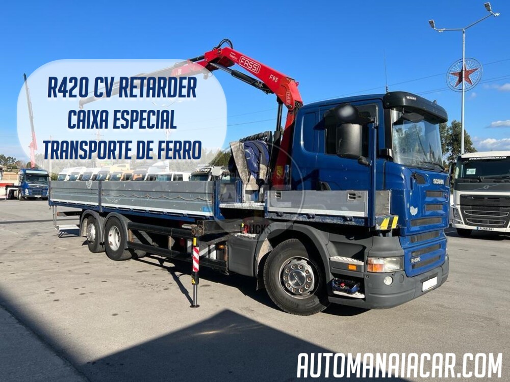 SCANIA R420 6X2 EURO5 RETARDER ESPECIAL TRANSPORTE FERRO COM GRUA FASSI F95A