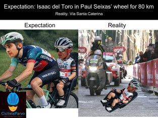 Expectation: Isaac del Toro in Paul Seixas’ wheel for 80 km Reality: Via Santa Caterina