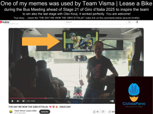 One of my memes was used by Team Visma | Lease a Bike during the Bus Meeting ahead of stage 21 of Giro d'Italia 2025 to inspire the team to win...