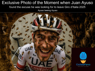 Exclusive Photo of the Moment when Juan Ayuso found the excuse he was looking for to leave Giro d'Italia 2025 Ayuso beeing Ayuso