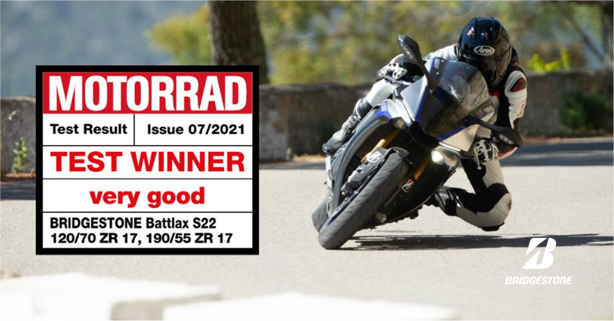 O Bridgestone Battlax S22 foi nomeado vencedor do teste de pneus desportivos Motorrad 2021! Ao repetir o primeiro lugar de 2019, o Battlax S22 foi considerado "a melhor mistura de todos os mundos".