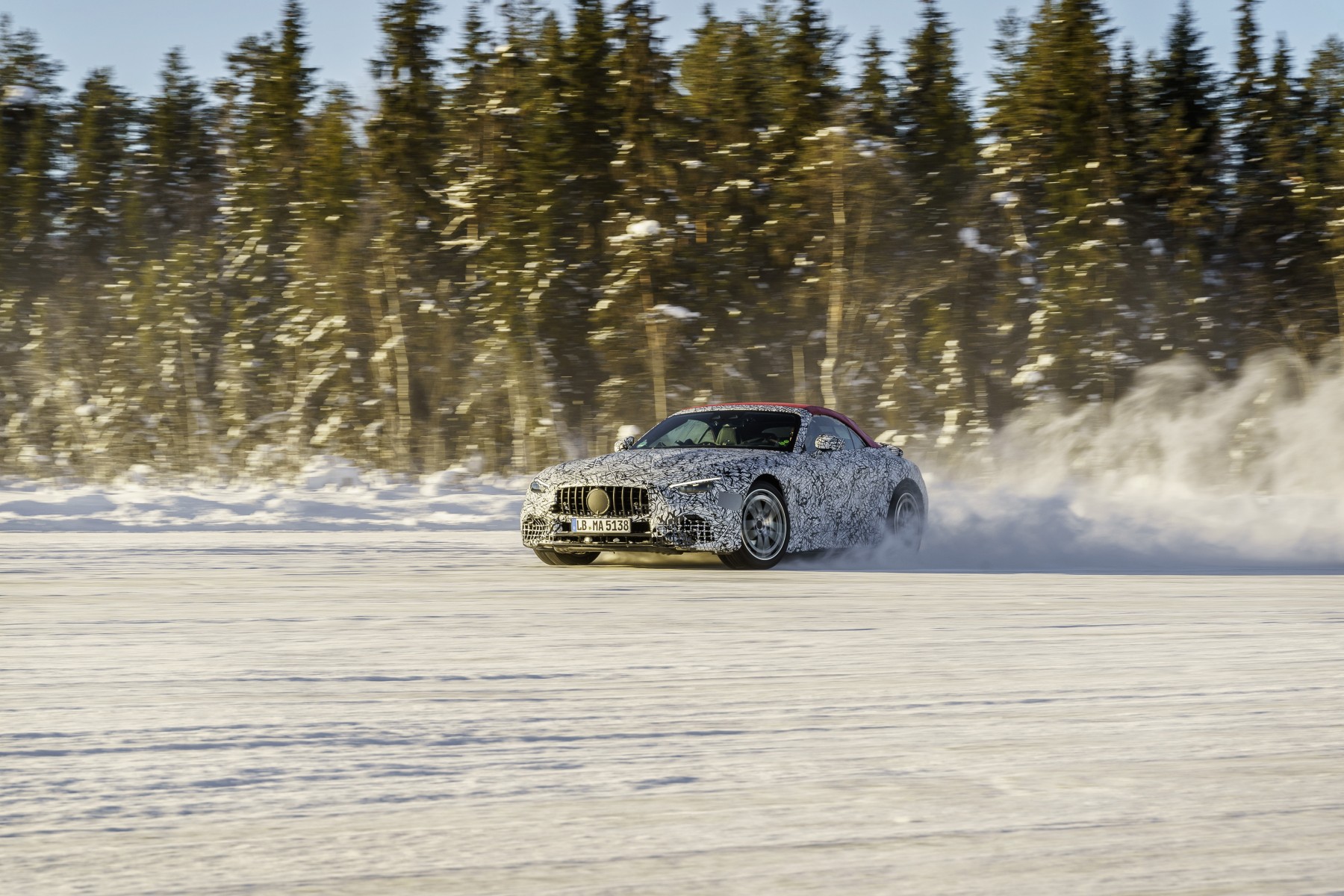 Cerca de 69 anos depois, a oitava geração do SL está prestes a entrar na reta final do seu desenvolvimento. Enquanto os testes em estradas públicas com o veículo desportivo Mercedes-Benz SL 300 ainda aconteciam na Autobahn A81, os engenheiros da Mercedes-AMG de hoje fazem os seus testes de condução num circuito especial fechado com neve, na Suécia.