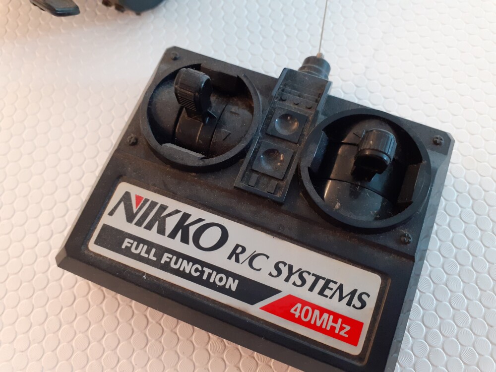 Tenho para venda um Carro Tele-Comandado Radio Control R/C Nikko The Tremor Original. Comprado Novo na Década de 90 (ou 1994 ou 95) e sempre estimado desde então. Com pouco uso. Em excelente estado, conforme se pode ver pelas fotos (tem apenas algum pó). Já não é ligado há muito tempo. Nunca ficou com as pilhas dentro durante para não danificar.